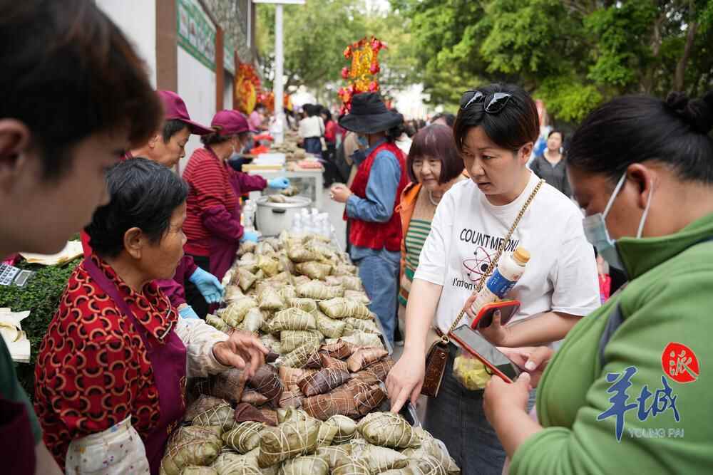 “居人空巷出,去赛海神祠。”今年“波罗诞”千年庙会首日便重现了昔日诗人描述的“波罗诞”盛况。一大早,南海神庙已是人潮涌动,除了广州的本土居民,还不乏专程从外地赶来的游客。羊城晚报全媒体记者获悉,传统美食波罗粽首日销售火爆,当天预计售出2万颗。