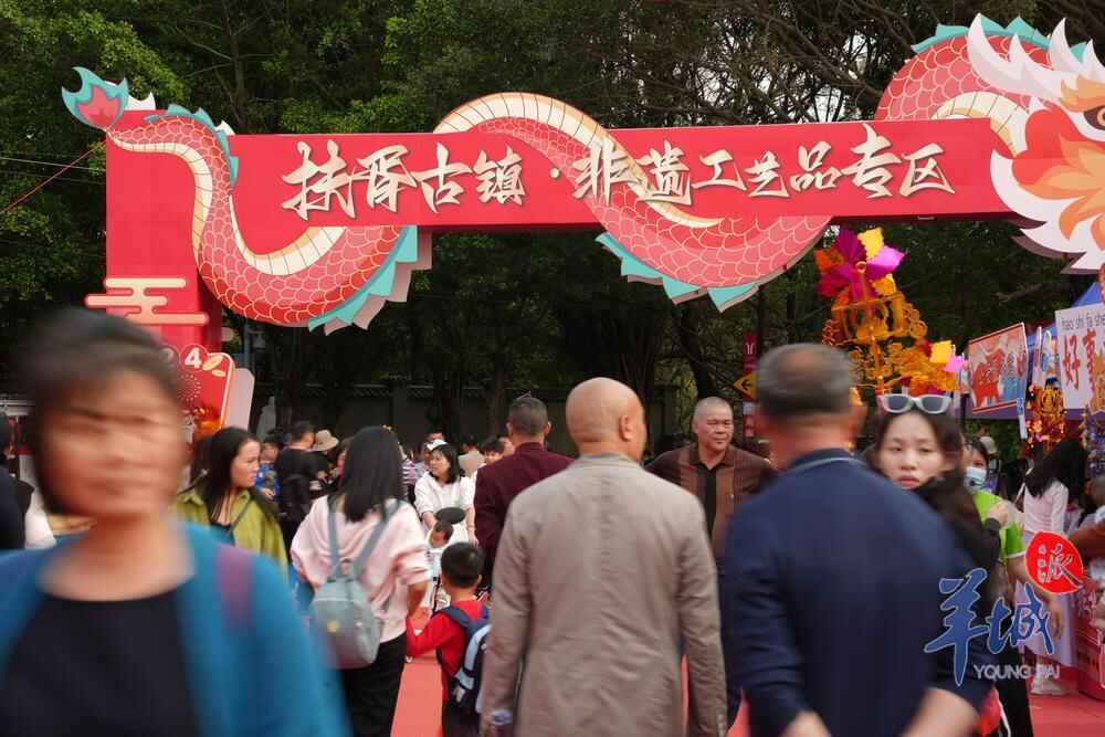 3月20日,广州黄埔“波罗诞”千年庙会正式启动,非遗专区吸引了不少市民游览和体验