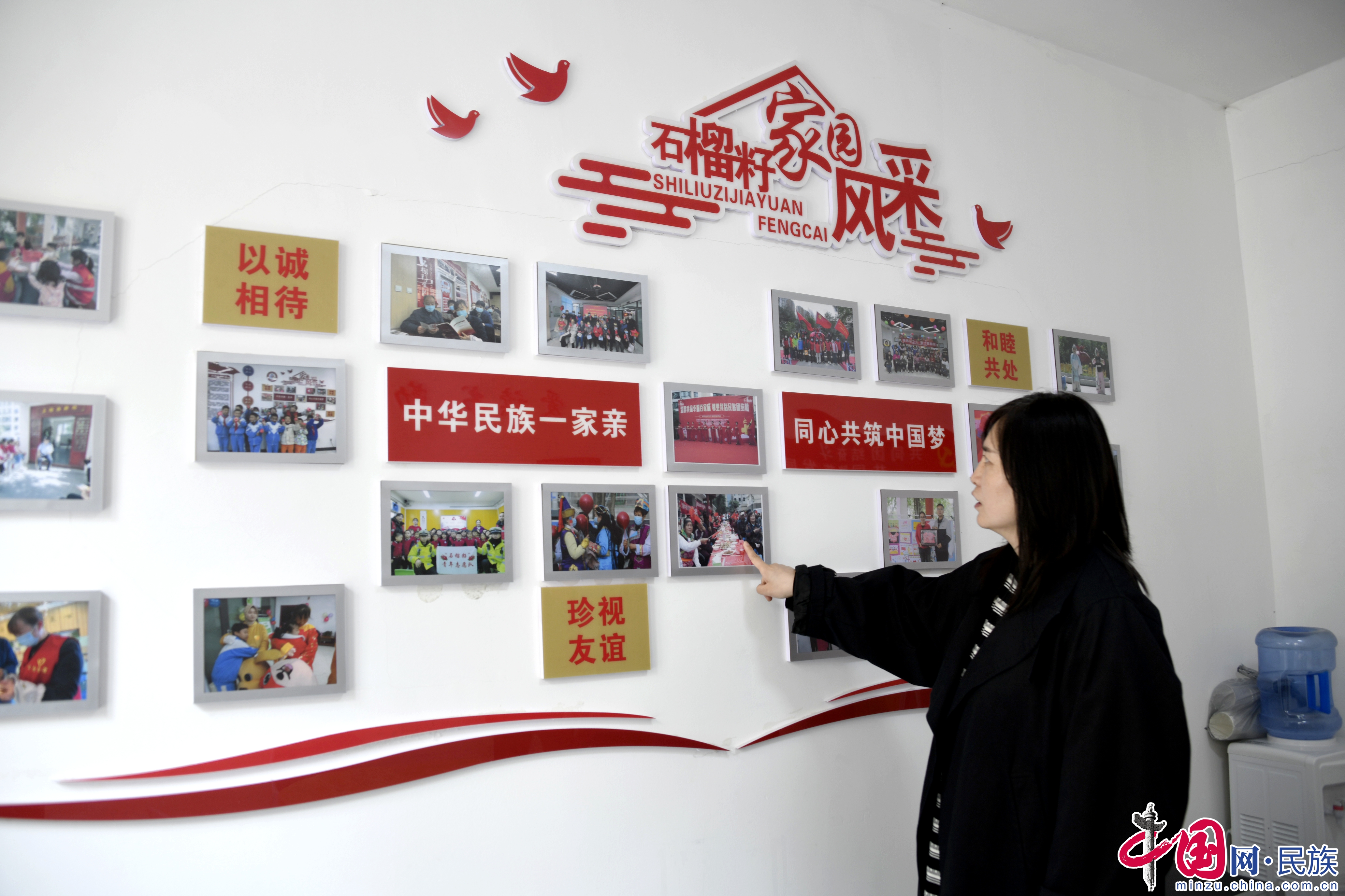 据北商业巷社区党委书记严红新介绍,在多方共同努力下,2023年3月,位于五四大街重工小区院内的“石榴籽”驿站建设完成,标志着辖区幸福圈“三站一中心”的顺利闭合,其间涵盖“石榴籽”书屋、廉政长廊、居民议事点、家风小广场、八角石榴圆亭等,为辖区各族群众在“寓教于乐”中厚植民族团结沃土。