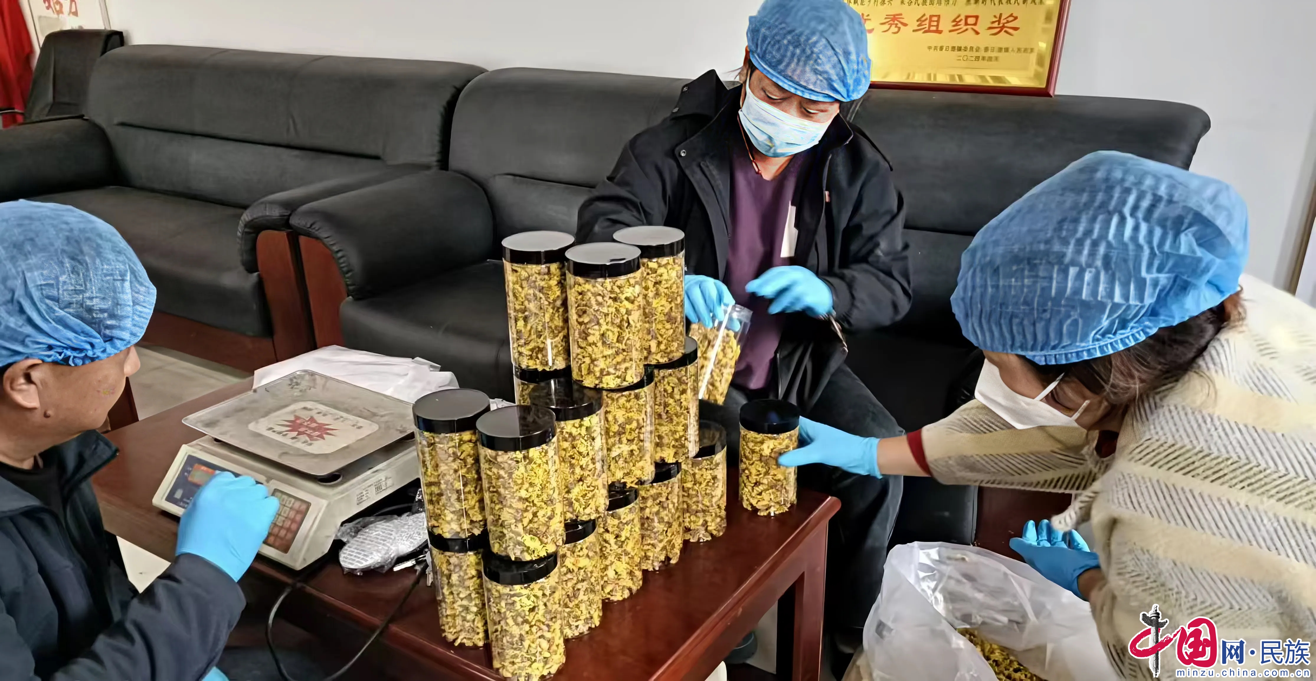 称重包装杭白菊。都兰县委宣传部供图