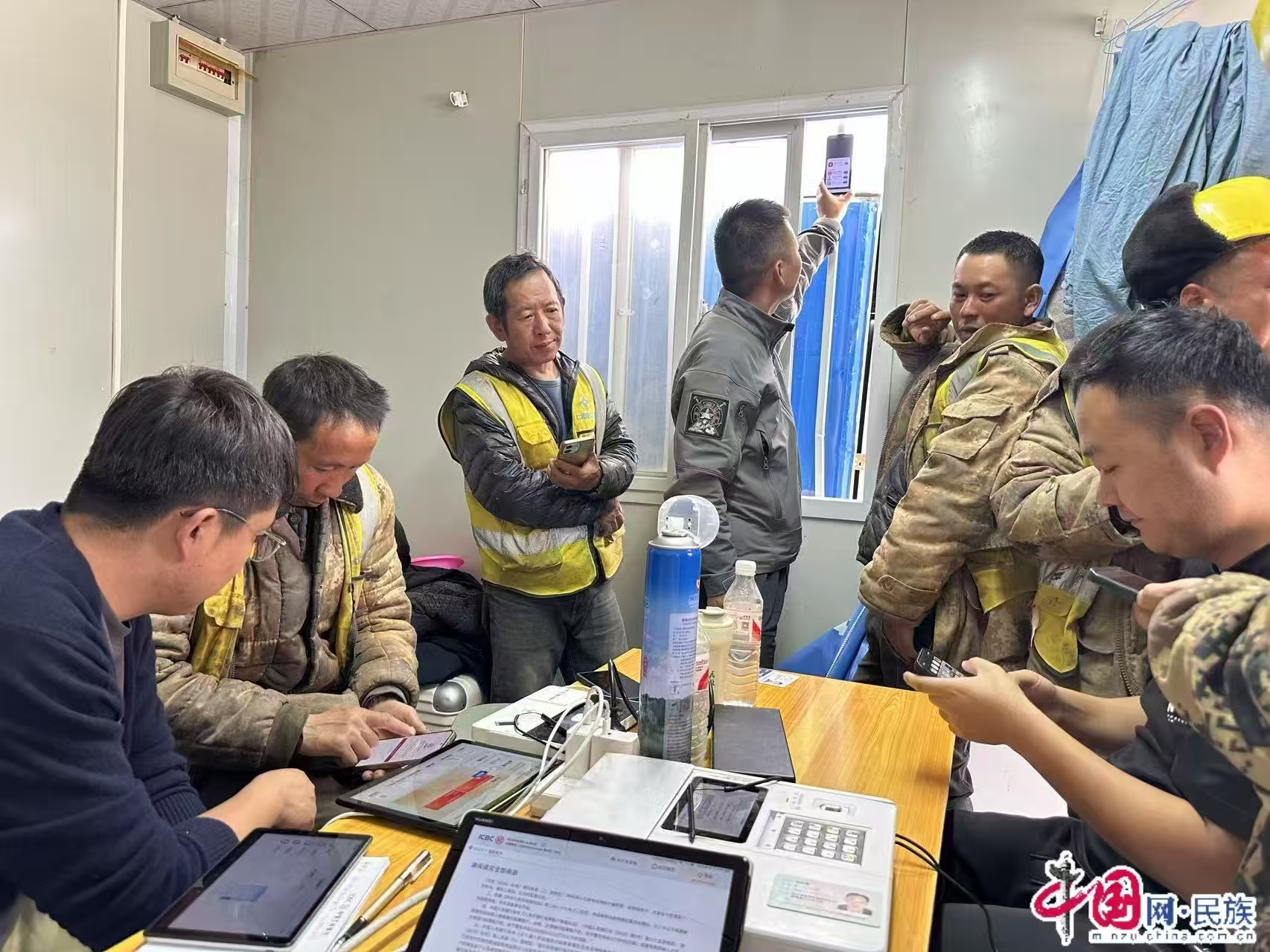 8月 6日,支行客服经理黄靖所在的 5人小分队,沿着 109国道前往素有“鬼门关”之称的五道梁地区,为修路施工队工人办理银行卡。那里海拔高、环境恶劣,队员们每天清晨六点便起床出发,抵达施工现场后还需步行前往工区,每个人都出现了不同程度的高原反应。即便如此,他们依然坚持工作,6天时间里成功办理银行卡约 500张,用高效服务满足了工人们的金融需求。
