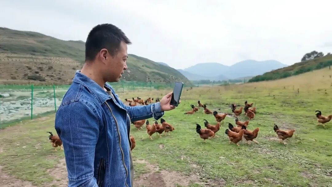 “友友们,看来,今天买鸡的人又来了!鸡多得很呐!”镜头前热情吆喝的“主播”,正是寺寨乡土鸡养殖项目负责人、马脊岭村党支部书记王生盛。随着他的手势,镜头转向身后开阔的露天草地,一群毛色油亮、体态健硕的土鸡在草地上肆意奔跑、低头啄食,一派生机盎然的景象。
