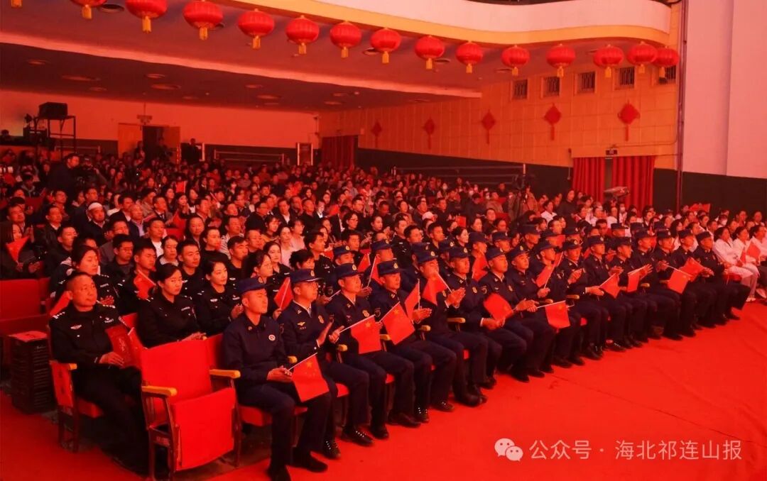 当国歌奏响时,全场起立,嘹亮的歌声穿透影剧院、回荡在草原上空。那一刻,各民族干部群众的面孔上洋溢着同样的赤诚,歌声里流淌的是对祖国最深沉的热爱。