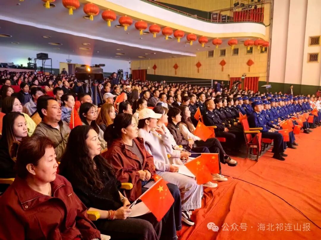 活动最后,全体人员起立,挥舞国旗,共同高唱《歌唱祖国》。激昂的歌声将现场气氛推向高潮,表达了海北各族儿女对祖国繁荣昌盛、国泰民安的美好祝愿。