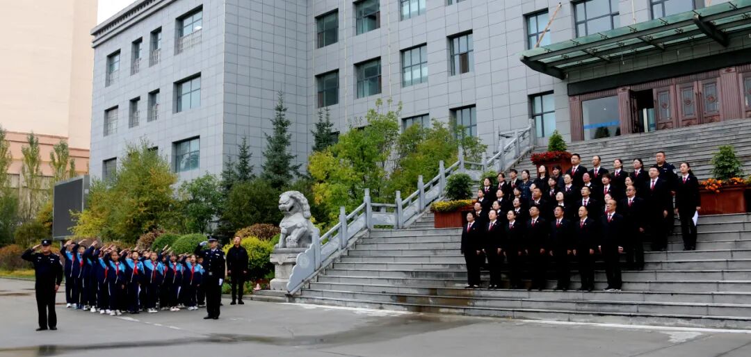 为让法治精神与爱国情怀同频共振,国庆节来临之际,湟源县人民法院特邀学生代表走进法院,参加了一场庄严而热烈的升旗仪式。清晨,同学们整齐列队,在法院审判大楼前注目五星红旗冉冉升起,对祖国的热爱与对公平正义的敬仰在国歌声中交融激荡。